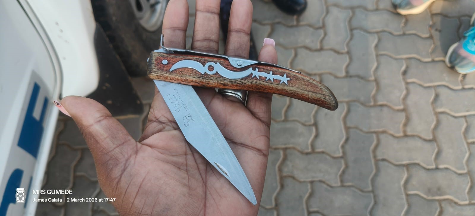 The suspect attempted to flee the scene but was apprehended after a brief foot chase. An okapi knife, described as a dangerous weapon, was confiscated during the arrest.