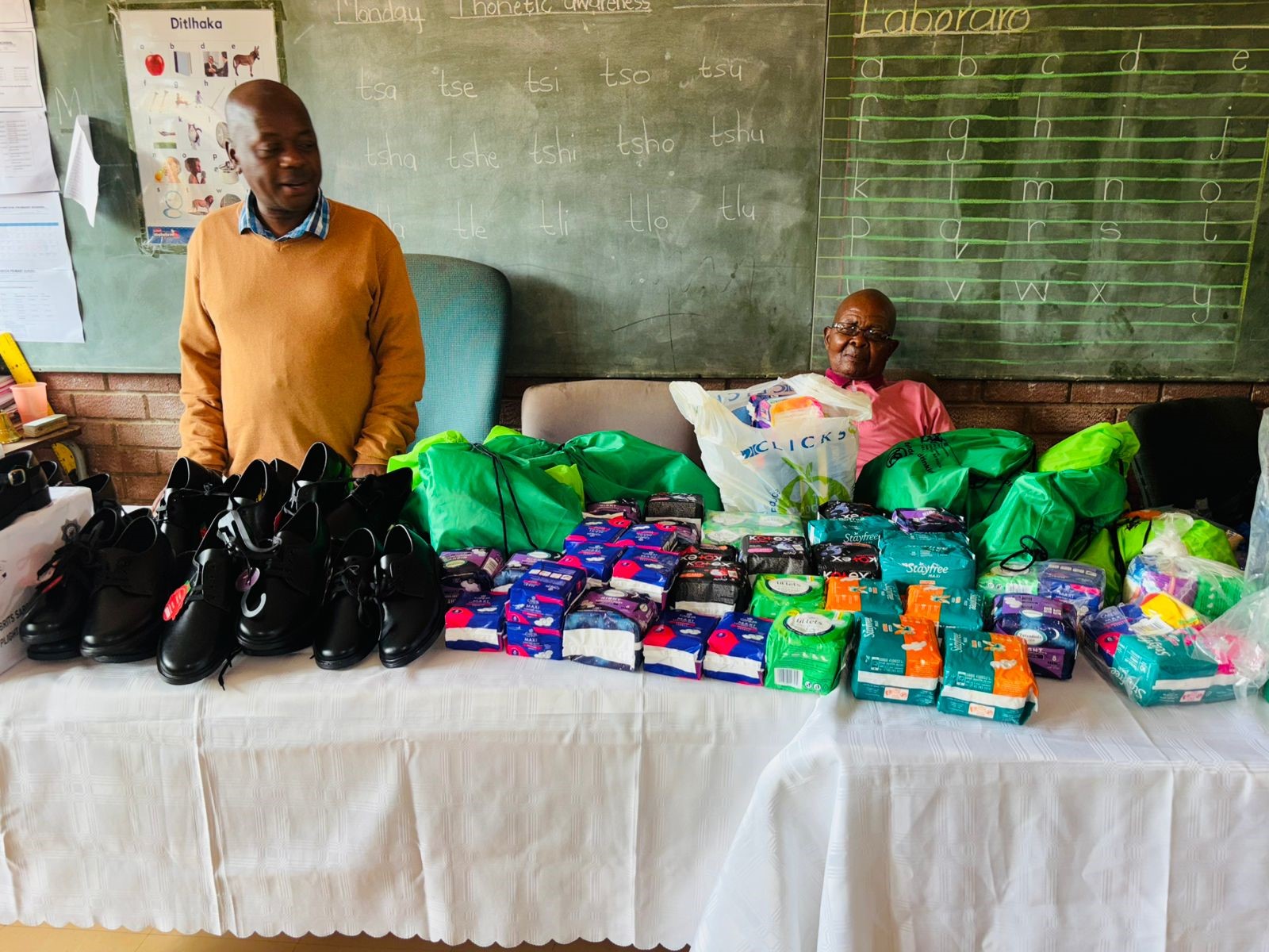 During the event, a total of 35 learners identified by the school received new school shoes, school uniforms, backpacks, water bottles, and sanitary pads.
